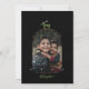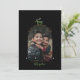 Un ciervo modesto se sienta en la parte superior de una foto familiar arqueada en esta tarjeta de vacaciones de color verde terroso y negro.