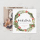 Esta elegante tarjeta de Navidad hawaiana "mele kalikimaka" presenta un fondo blanco con una corona de follaje tropical y bayas rojas. El reverso presenta tu foto. Personalízala según tus necesidades. Puedes encontrar productos coincidentes en mi tienda.