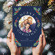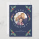 Tarjeta de Navidad con Foto de Navidad con Botánica de Invierno en Azul Marino Moderno