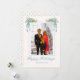 Envía deseos cálidos de fiestas con esta elegante tarjeta de Navidad de acuarela. El diseño incluye suaves elementos verdes y lazos azules. Perfecta para crear saludos personalizados de fiestas para compartir con amigos y familiares.