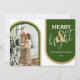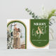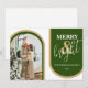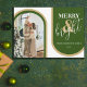 Estas tarjetas de Navidad minimalistas son perfectas para enviar deseos de Navidad. Las tarjetas presentan un tema retro con tonos de verde y dorado. Una plantilla de saludo de Navidad moderna, tu foto enmarcada con arcos en tonos modernos verdes y dorados. Los estilos de fuente y el color se pueden cambiar haciendo clic en el enlace personalizar más después de personalizar.