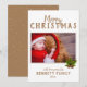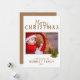 Tarjeta de Navidad con guion de pino. Tarjeta de Navidad festiva con Felices Fiestas, su deseo, nombre de la familia y el año en un guion dorado moderno - personalice con su texto. El fondo es blanco. El diseño tiene hojas de pino verdes. Inserte su foto familiar favorita en la plantilla y haga una tarjeta de Navidad especial para su familia y amigos.