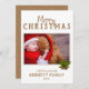 Tarjeta de Navidad con guión Pino Foto de vacaciones. Tarjeta festiva de vacaciones con Felices fiestas, tu deseo, nombre de la familia y el año en un guión dorado moderno - personalízala con tu texto. El fondo es blanco. El diseño tiene hojas de pino verdes. Inserta tu foto familiar favorita en la plantilla y haz una tarjeta especial de Navidad para tu familia y amigos.