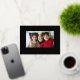 Esta tarjeta de Navidad con foil presenta una sola foto enmarcada en una línea de punto de cruz y un borde decorativo de punto de cruz alrededor de la foto.