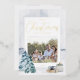 Difunde alegría navideña con esta elegante tarjeta de Navidad que presenta una ilustración de acuarela de un paisaje invernal nevado con árboles de Navidad y regalos. Con tu elección de lámina metálica real de rosa dorado, dorado o plateado.