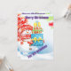 Tarjeta de Navidad con regalo de muñeco de nieve