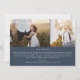 Esta tarjeta de Navidad con superposición de foto azul marino chic moderno es la tarjeta de felicitación navideña elegante perfecta. Este diseño boho simple presenta caligrafía clásica sofisticada en azul marino oscuro rústico y blanco. Personalice la parte delantera de la tarjeta con una foto, el nombre de su familia y el año. Incluya 2 fotos adicionales y un año opcional en revisión o boletín familiar en la parte posterior de la tarjeta.