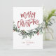 Modern Red Merry Christmas Script GreeneryDiseñado por Stacey Meacham