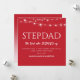 Sorprende a tu padrastro con esta hermosa tarjeta de Navidad contemporánea. Con un clásico fondo rojo de Navidad y texto blanco que dice 'PADRASTRO, EL PADRE QUE DIO UN PASO ADELANTE', y una plantilla de mensaje de Navidad. Todo el texto se puede editar para adaptarlo a tus necesidades y si haces clic en 'personalizar más', puedes cambiar el estilo y el color de la fuente.