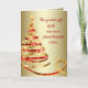 Tarjeta de Navidad cristiana con hermosa cinta roja y dorada árbol de Navidad en un elegante fondo dorado. Esta hermosa tarjeta de Navidad cristiana roja y dorada se personaliza fácilmente con su nombre o apellido, o puede dejarla tal como está y agregar su mensaje escrito a mano cuando lleguen.