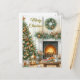 Tarjeta de Navidad de árbol de Navidad y chimenea