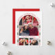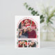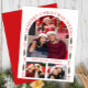 Envía alegría festiva con esta elegante tarjeta de Navidad con arco que presenta tres fotos personales, acentos de bastones de caramelo, follaje de pino y un saludo rojo en negrita. Con un diseño de arco elegante y espacio para el nombre de su familia y el año, esta tarjeta es la combinación perfecta de moderno y tradicional.