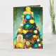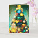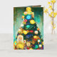 Esta Tarjeta de Navidad es exuberante en su riqueza. Árbol realista con decoraciones de cintas gruesas y colores ricos. Diseño de acuarela al estilo de Gustav Klimt hecho por mí.