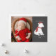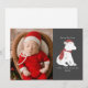 Ilustración de pingüino bebé con sombrero y bufanda de Santa. Personaliza el nombre, año y foto.