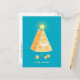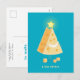 Un adorable árbol de Navidad en forma de cuña de queso suizo que muestra una gran sonrisa.