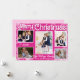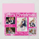 Fondo rosa caliente con copos de nieve caprichosos blancos hacen una tarjeta de Navidad única esta temporada. Esta tarjeta de Navidad tiene espacio para 5 hermosas fotos. La tipografía también es blanca para personalizar con el nombre de su familia, nombres y año.