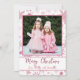 Tarjeta de Navidad de copos de nieve rosados con f