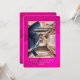 Tarjeta de Navidad elegante y moderna con Pavo Real Rosa en acuarela. Reemplace con sus imágenes y texto. También puede agregar su mensaje extendido en el reverso de la tarjeta.
