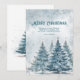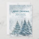Eleva tu celebración y transforma a tus seres queridos en un caprichoso país de ensueño invernal con una elegante tarjeta de vacaciones, estableciendo el tono perfecto para una celebración inolvidable. Agrega un toque personal a tu tarjeta que presenta delicados copos de nieve y árboles de Navidad en tonos plateados y azul glacial pintados con acuarela. Acepta la magia de la temporada con un paraíso nevado que asegura que tu celebración navideña brillará con estilo y encanto.