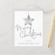 Tarjeta navideña acuarela Minimalista Estrella Plata Feliz. Una tarjeta plana SMALLER de 4,5" x 5,6" para sus saludos festivos en una brillante tarjeta SEMI GLOSS de 110 lb (similar al espesor de una postal) POR FAVOR NOTE: El sobre suministrado con esta tarjeta es ligeramente más grande que la propia tarjeta. Estilo contemporáneo con un estilo manuscrito moderno para el encabezado principal y fácil personalización con tu saludo y nombres en la parte inferior. En el centro de la ciudad hay un ilustracion acuarela plateado. En la parte posterior hay una sombra de color plateado pálido que se puede cambiar a otro color si se quiere a través del personalizar.