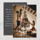 Captura la magia de tu temporada navideña con esta impresionante tarjeta de Navidad. Con un momento acogedor de la familia decorando el árbol de Navidad, esta tarjeta vertical muestra tipografía de escritura elegante y espacio para personalizar con el nombre de tu familia. Perfecta para difundir amor y calidez a seres queridos en esta temporada festiva.