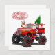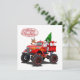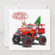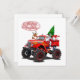 Tarjeta de Navidad de felicitación de dibujos animados con Santa genial en un camión monstruo