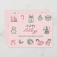 Esta elegante tarjeta de felicitación navideña presenta encantadoras ilustraciones de Navidad dibujadas a mano, incluyendo velas, adornos, un árbol de Navidad, un oso de peluche, un caballo de balancín y vegetación festiva, todo dispuesto sobre un suave fondo de color rosa. Con un cálido mensaje de "Felices Fiestas" y el nombre de la familia personalizable, esta tarjeta es perfecta para enviar deseos sinceros de vacaciones a amigos y seres queridos. Una mezcla elegante de minimalismo moderno y encanto navideño nostálgico. En la parte posterior, puedes escribir tu texto y tus nombres.