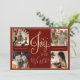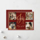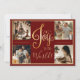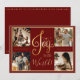 Alegría al mundo 4 tarjeta de vacaciones de collage de fotos. Fondo rojo profundo de vacaciones. Agrega tus fotos familiares favoritas para personalizar. Agrega tu mensaje personal en el reverso de la tarjeta. Cambia el año en la parte posterior de la tarjeta. Elegante. Tan simple, pero con estilo.