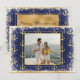 Tarjeta de felicitación de Navidad con tema náutico. Hermosos anclotes dorados sobre fondo azul marino. Marco metálico dorado. Marco de nieve en la parte delantera y trasera. Agregue sus fotos familiares favoritas para personalizar esta belleza. Cambie los nombres y el año. Muy elegante. Perfecta para todos los dueños de velero y yate.