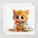 Alegrar el día de alguien con este encantador gatito naranja enredado en luces de Navidad coloridas. Una forma encantadora de difundir la alegría y el espíritu navideño.