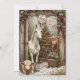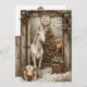 Tarjeta de felicitación navideña rústica para sus seres queridos, familiares y otros. La ilustración presenta una escena tranquila de un establo de granja inspirada en la calma de una vida campestre serena, especialmente un momento clásico de Navidad en el campo para amantes de caballos y vacas animales campestres rústicos. Está inspirada en el belén y el encanto campestre. El reverso tiene una cita "Desde el pesebre hasta el prado, que su paz esté con usted" y deseos cálidos que se pueden personalizar con los suyos. Tarjeta de regalo perfecta para saludos nostálgicos de las fiestas navideñas.