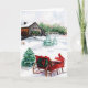 Tarjeta de felicitación escénica del molino de viento del trineo de la nieve de la granja del día de fiesta del navidad. Una granja escénica nevada elegante con un paseo y un molino de viento del trineo. Saludos hermosos y elegantes del día de fiesta.