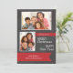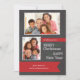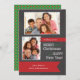 Esta tarjeta de Navidad dos de la foto adaptable de los marcos ofrece un fondo gris de la pizarra con la fraseología: Felices Navidad y Feliz Año Nuevo escritas en la tiza blanca. Una bandera roja en la parte inferior de la tarjeta ofrece el tipo adaptable para que usted añada sus apellidos. La parte trasera de esta tarjeta tiene un modelo de lunar rojo, gris y verde.