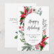 Tarjeta de Felicitación Navideña de Poinsettia Elegante con Muérdago.