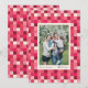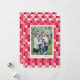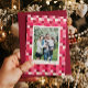 Una divertida y audaz tarjeta de Navidad con marco a cuadros rojos.