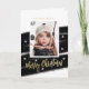 Tarjeta de Navidad de moda con su propia foto en el frente y con un fondo blanco y una pintura negra hermosa en el exterior y el interior. Con el texto "le deseamos Felices Navidad" en letras con clase del oro en el frente y "la Feliz Año Nuevo" en el interior.