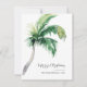 Una moderna y elegante tarjeta de felicitación plana de vacaciones con tipografía de escritura moderna y manuscrita con un árbol de palmeras. Personalizar fácilmente esta tarjeta haciendo clic en el botón "Personalizar".