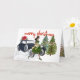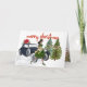 Tarjeta de Navidad de mujer afroamericana con coche antiguo y elegante.