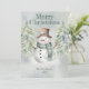 Envía cálidos deseos esta temporada con esta encantadora tarjeta de Navidad de un muñeco de nieve pintado con acuarela, personalizada con tu mensaje en el interior. Con un festivo muñeco de nieve pintado a mano sobre un fondo invernal, esta tarjeta de felicitación navideña personalizada es perfecta para enviar alegría navideña a familiares, amigos o colegas. El diseño alegre la hace ideal para fiestas navideñas, celebraciones invernales o simplemente para compartir una nota sincera. Impresas en cartulina de alta calidad con detalles vibrantes de acuarela, estas tarjetas de Navidad personalizadas están diseñadas para destacarse en el buzón y llevar alegría a cada destinatario.