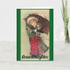 Una imagen vintage y linda de una niña llevando una corona, mientras sostiene un cachorro en su manguito, aparece en esta tarjeta de Navidad para una nieta. La parte delantera de la tarjeta dice "Nieta" y el interior dice "Por toda la alegría que traes a nuestras vidas, esperamos que tu Navidad sea Feliz. Y que tu Año Nuevo sea Brillante. Te Amamos". ¡Puedes cambiar el familiar en esta tarjeta! Una tarjeta dulce para enviar a una nieta en Navidad!