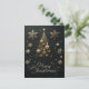 Celebre la magia de la temporada navideña con nuestra tarjeta de Navidad Starry Night Black & Gold. Esta tarjeta captura la esencia de una tranquila noche de invierno con su fondo negro profundo y de medianoche, proporcionando un escenario perfecto para la sinfonía de oro que se desarrolla en ella. Un árbol de Navidad central, elaborado con una elegancia minimalista, se eleva hacia arriba, sus ramas salpicadas de delicadas orbes y estrellas que brillan como joyas contra el cielo nocturno. Encima, majestuosas copos de nieve caen suavemente, cada una detallada intrincadamente y dorada con un toque de esplendor dorado. El saludo atemporal 'Feliz Navidad' está escrito en una elegante y fluida escritura que parece bailar a lo largo de la parte inferior, sus tonos dorados que reflejan la luminosidad de la escena superior. Esta tarjeta invita a un toque de sofisticación y calidez a los hogares y corazones de aquellos que aprecia. Cada tarjeta viene acompañada de un sobre blanco crujiente, listo para transmitir sus deseos festivos con