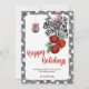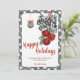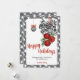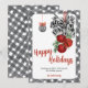 Envía cálidos deseos con estilo con esta tarjeta de Navidad de Noël en negro y blanco. Con un borde de gingham negro y blanco elegante, campanas rojas festivas, cinta a rayas y adornos colgantes elegantes, este diseño combina el encanto clásico de la Navidad con el estilo moderno de granja. Personaliza con el nombre de tu familia y un saludo para crear un recuerdo emotivo que difunde paz, amor y alegría durante toda la temporada navideña.