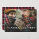 Tarjeta de Navidad de oro con foto y símbolo & con respaldo de cuadros rojos. El color del respaldo se puede personalizar. Parte de una colección.