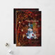 Elegante Tarjeta de Navidad/Fiestas pintada a mano en rojo y dorado con un árbol dorado, y algunos personajes lindos en un fondo rojo brillante, un muñeco de nieve, un niño, una ardilla, un cuervo, un búho, un pájaro y un ratón. También hay un gráfico en el otro lado. Esta tarjeta permite personalizar todos los textos. Puedes pedirla impresa y/o descargarla también. ¡Felices Fiestas!