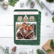 Esta tarjeta navideña de pan de jengibre incluye la foto de tu familia e ilustraciones de pan de jengibre de colores brillantes. La parte trasera de la tarjeta tiene un patrón de árbol y espacio para que agregues un mensaje y/o más imágenes. ¡Felices Fiestas! © 2023 Tea Olive Co.