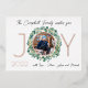 Tarjeta de auténtico foil que se puede personalizar con tu foto (delante y detrás), año, apellido y nombres, incluyendo el saludo. El foco principal es la palabra JOY que está impresa en foil (el año también es foil). La O de la palabra JOY sirve como marco para tu foto y no solo está enmarcada por la letra de foil, sino por una corona de eucalipto en acuarela. En el reverso hay espacio para otra foto y tus noticias anuales - O - elimina el texto de muestra y déjalo en blanco.