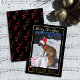 Una elegante tarjeta de Navidad vertical con papel de estaño dorado con una sola foto de perro . Utilice la plantilla proporcionada para intercambiar la imagen con la foto de su mascota favorita , sus propios deseos de temporada y el nombre de su familia . La parte trasera de la tarjeta está hecha de un patrón de bayas rojas .