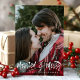 Celebra tu primera temporada de fiestas como recién casados con esta encantadora tarjeta de foto "Casados y Alegres". Perfecta para parejas, este diseño presenta un guión festivo y manuscrito con espacio para personalizar con sus nombres y una foto querida. Difunde amor y alegría navideña mientras compartes tu felicidad con familiares y amigos durante la época más maravillosa del año.