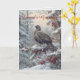 Tarjeta de Navidad que presenta una hermosa escena nevada con un pavo salvaje posado en un arbusto de bayas en la nieve. Puedes personalizar tanto el saludo en la parte delantera como el mensaje dentro de la tarjeta a tu gusto.