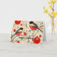 La tarjeta de Navidad personalizable presenta dos petirrojos posados en ramas con adornos rojos colgantes.